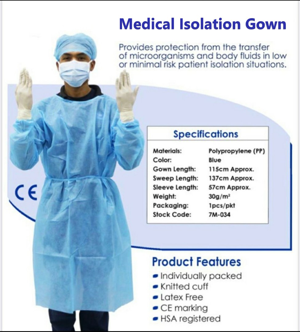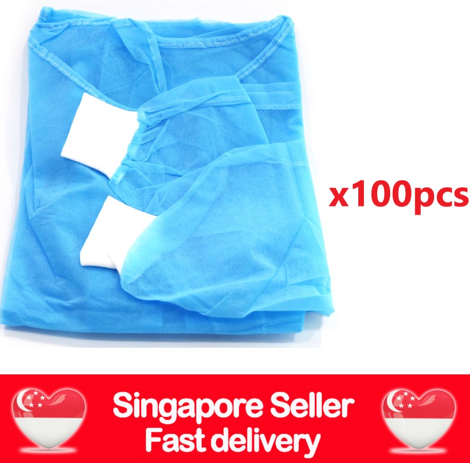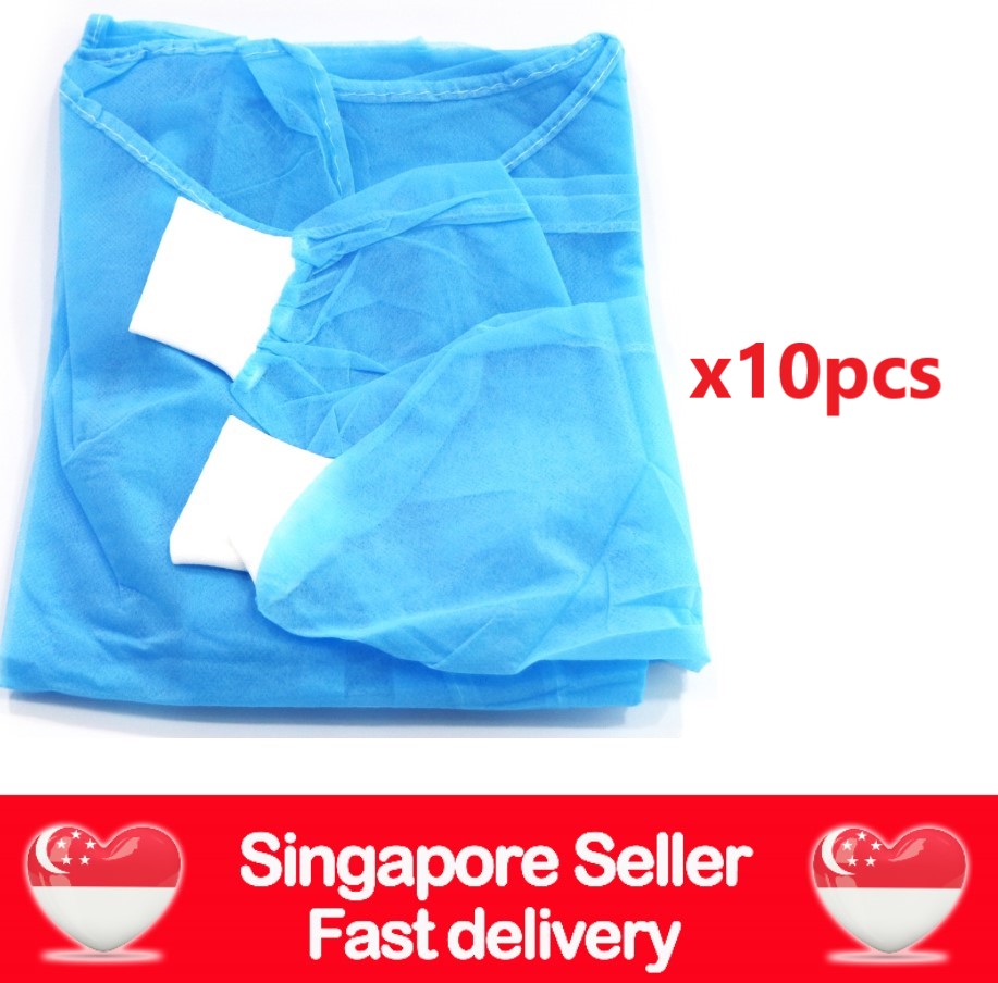 (SG Ready Stocks) Isolation Gown, PPE Gown, Surgical Gown, Medical Gown with knitted cuffs, 10pcs pack/ 1pc pack, SG Seller Fast Shipping